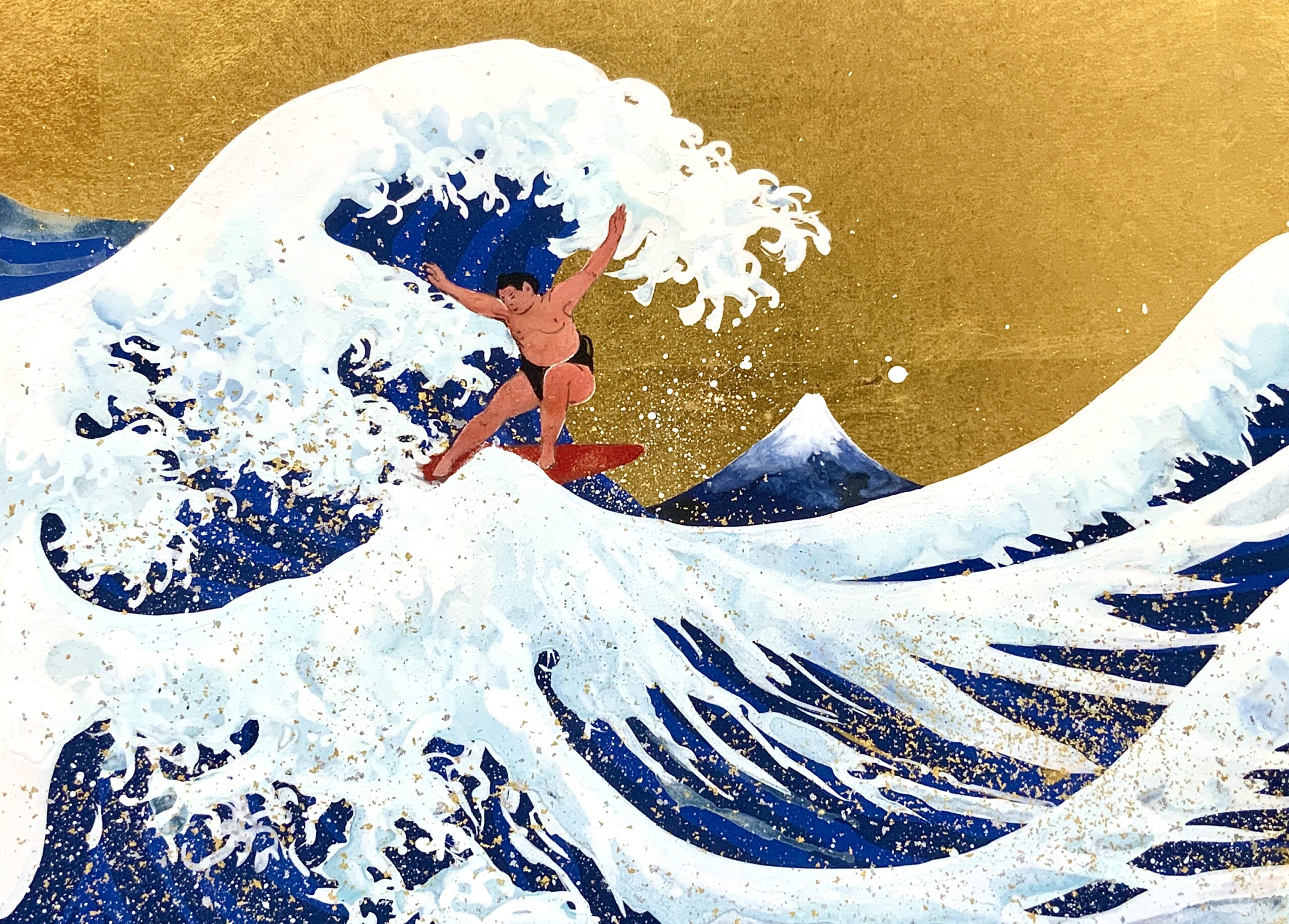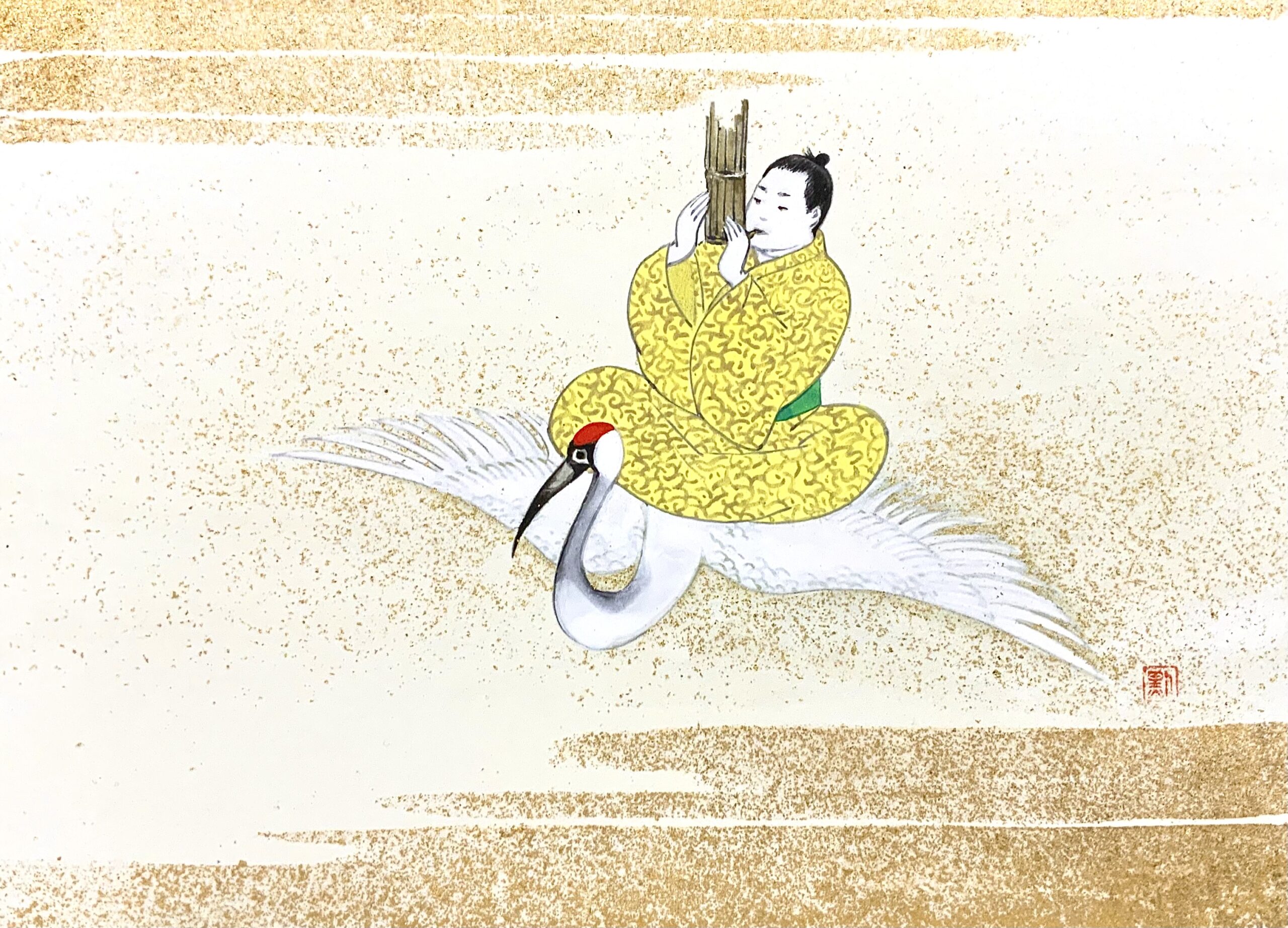 「ゆるやかな落下#2 / Slowly Drop #2」 (1620×1303 mm ,2005,和紙・岩絵具・墨・金箔・胡粉 / Washi Paper , Pigment ,India-Ink, gold foil,Shell powder)